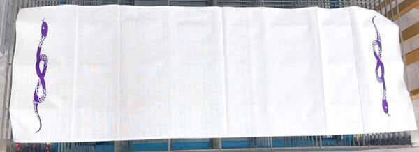 シンプルなデザインが魅力の蛇てぬぐいが登場しました!清潔感あふれるホワイトを基調に、落ち着いた蛇の模様がポイントです。