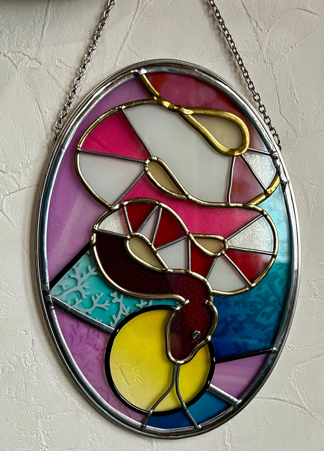 グラスアートという技法で制作した、ガラスのインテリアプレートになります。